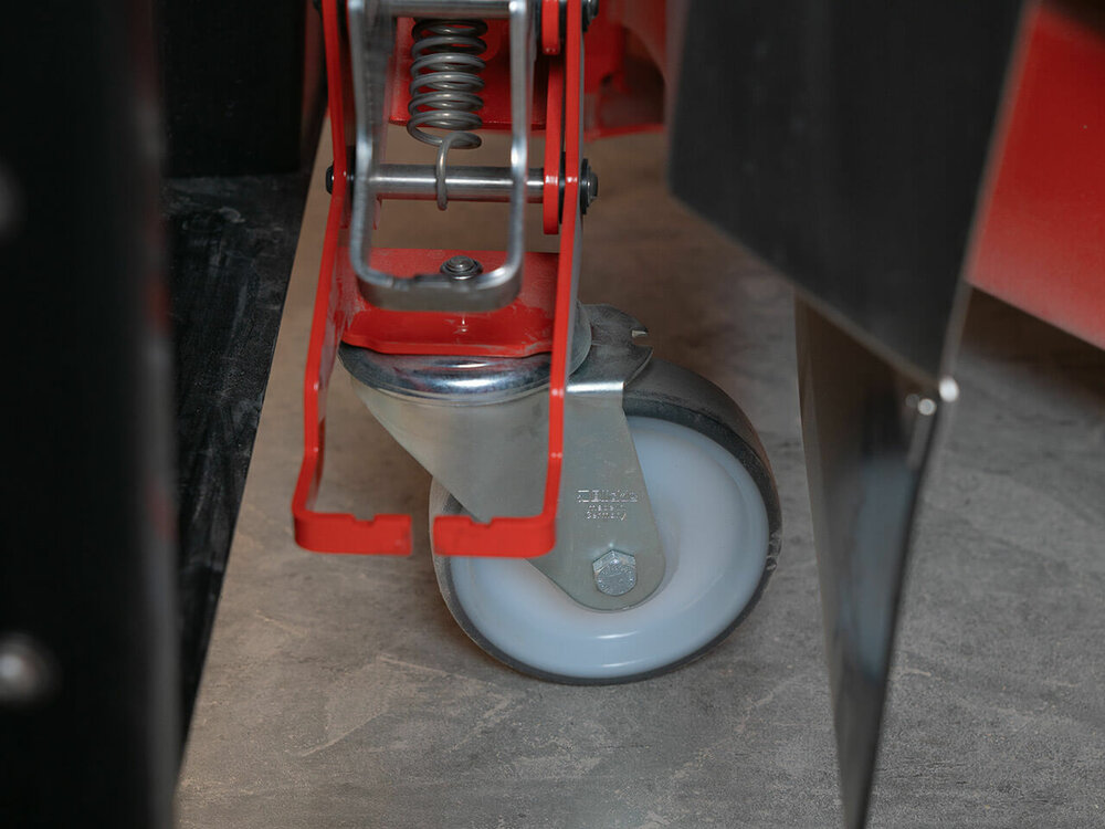 Komfortable, klappbare Abstellrollen mit Fußbedienung.